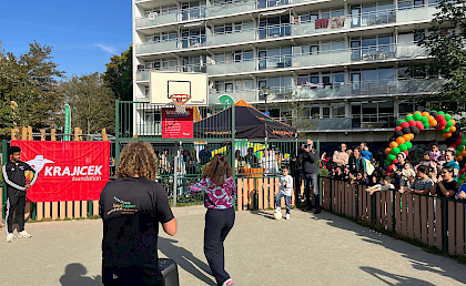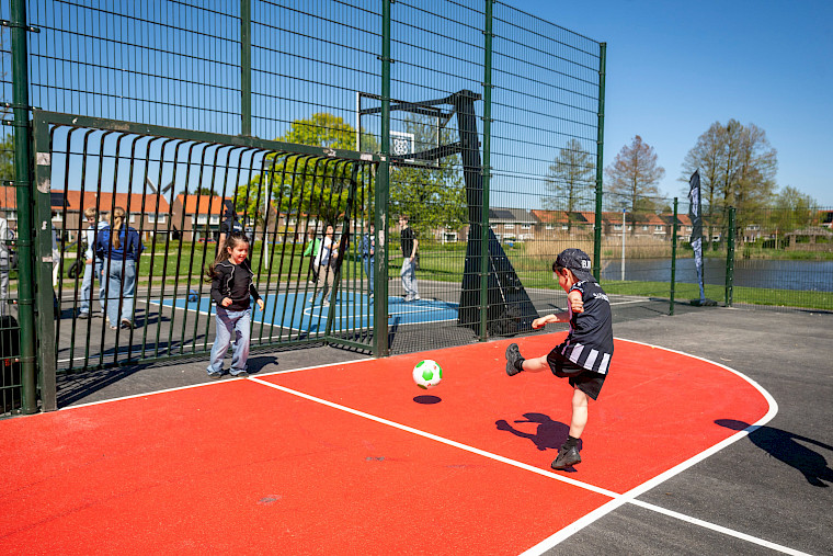 En dat bleef niet bij toekijken: meteen na de opening maakten kinderen uit de buurt enthousiast gebruik van de nieuwe basket en voetbalgoals. Er werd volop gespeeld, gescoord en vooral heel veel plezier gemaakt. Precies waar een Krajicek Playground voor bedoeld is.