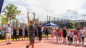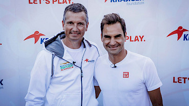 Roger Federer geeft tennisclinic op Playground Reigersbos
