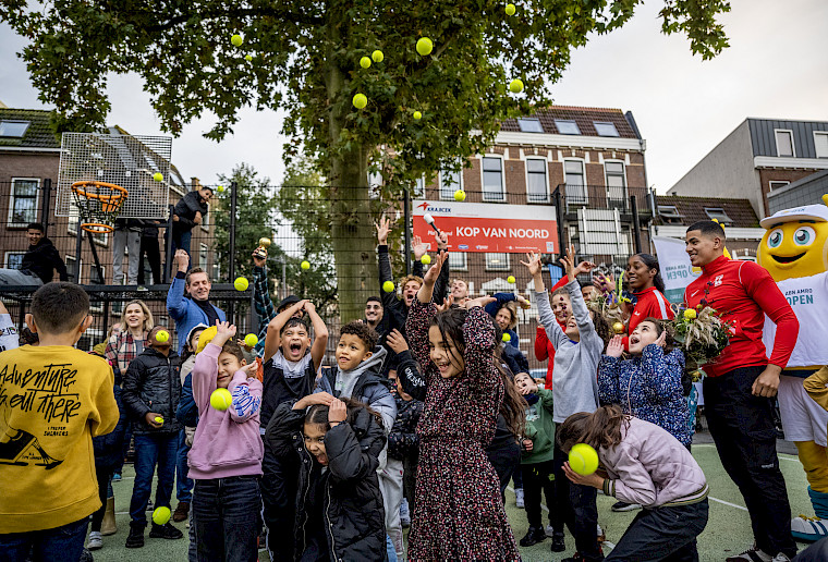 "Kop van Noord is een mooie en duurzame Playground rijker en hoe bijzonder is het om te bedenken dat deze sportvloer ooit 90.000 tennisballen waren? Wij hopen in de toekomst nog meer van dit soort innovatieve en duurzame projecten te mogen uitvoeren.", zegt Gerlinde van Raalte (directeur Krajicek Foundation) "Ook ben ik ontzettend trots op onze Scholarshippers die vandaag een gouden bal uit handen van Jolanda Jansen mochten ontvangen. Wij weten hoe belangrijk zij zijn in de buurt. De erkenning vanuit ABN AMRO Open voor de impact die zij maken, vind ik dan ook echt een eer. Niet alleen mogen ze de finale bijwonen, ook zullen ze tussen andere uitblinkers plaatsnemen bij de lunch met Esther Vergeer en Richard Krajicek."