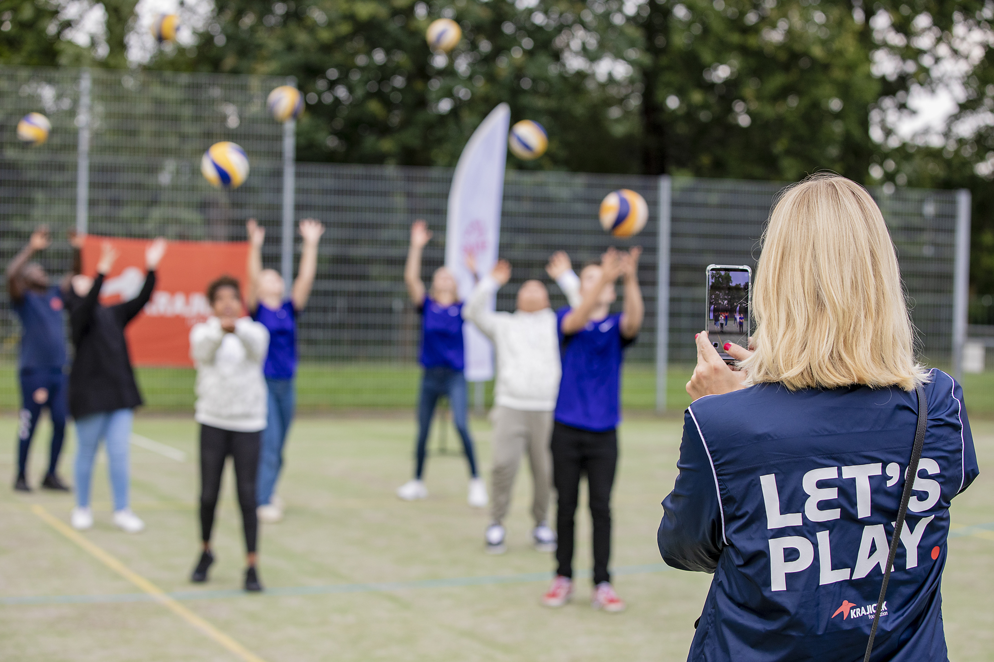 Een win-win situatie: de sportleiders kunnen met de helpende handen extra activiteiten aanbieden in het buitenspeelseizoen en de jongeren ervaren hoe het is om mee te helpen op een Krajicek Playground.