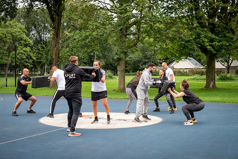 Ruim twintig enthousiastelingen namen deel aan de train-de-trainer clinics die de Krajicek Foundation heeft ontwikkeld in samenwerking met IT4Kids en TrainMore. Urban Fit, een combinatie tussen crossfit en bootcamp, is een fanatieke work-out die makkelijk buiten op de Playgrounds georganiseerd kan worden. De train-de-trainer clinics richten zich speciaal op sportleiders en Krajicek Scholarshippers. Wim de Jong, regiomanager Krajicek Foundation: “Het idee hierachter is dat zij met de opgedane kennis Urban Fit op een veilige en verantwoorde manier kunnen aanbieden in de wijk aan jongeren (15+) en volwassenen.”